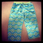 So with our first post in this feature – here is our item. It’s a pair of pajama ‘satin’ bottoms we got at the Fairfield Markets Swap Meet. We just love the pattern and the playful colours!