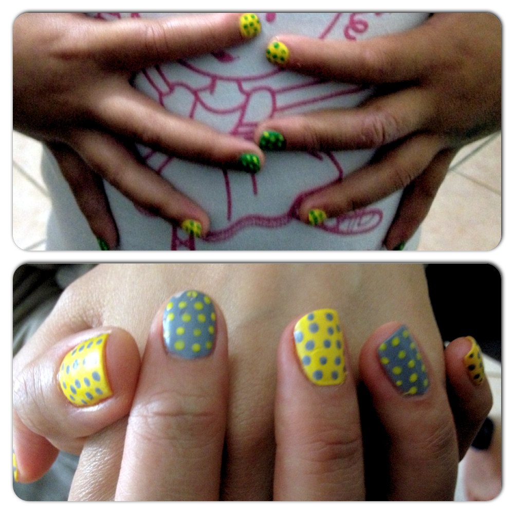 So we gave it a go…we used a BBQ skewer to make the dots…Shout out to Michelle for doing Amour’s nails!