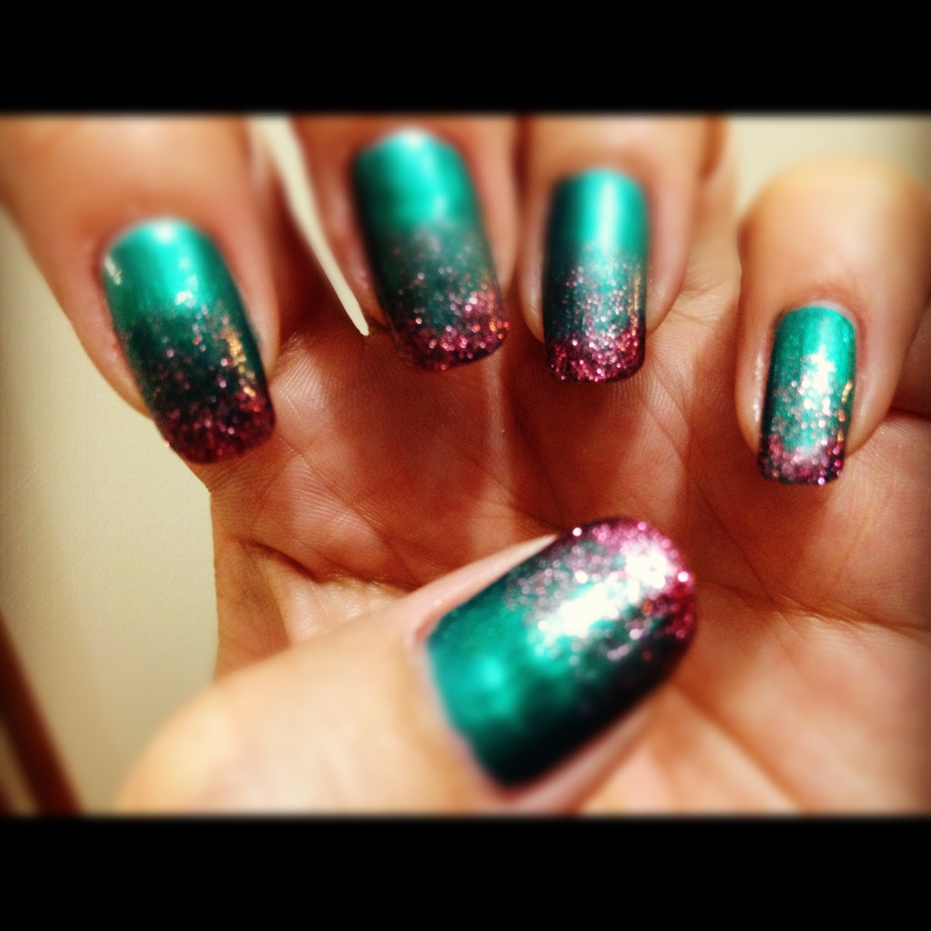 We decided to put the glitter part at the tip of the nail. In the tutorial the glitter part is at the bed of the nail. And here’s the end result…What do you think?