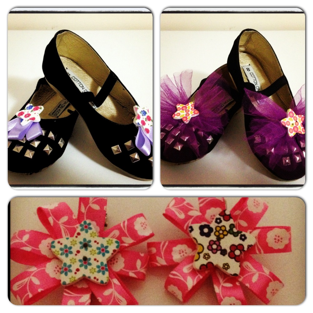 I then restyled some of the decorations from my other niece’s recent 4th birthday and made some shoe clips and hair clips.