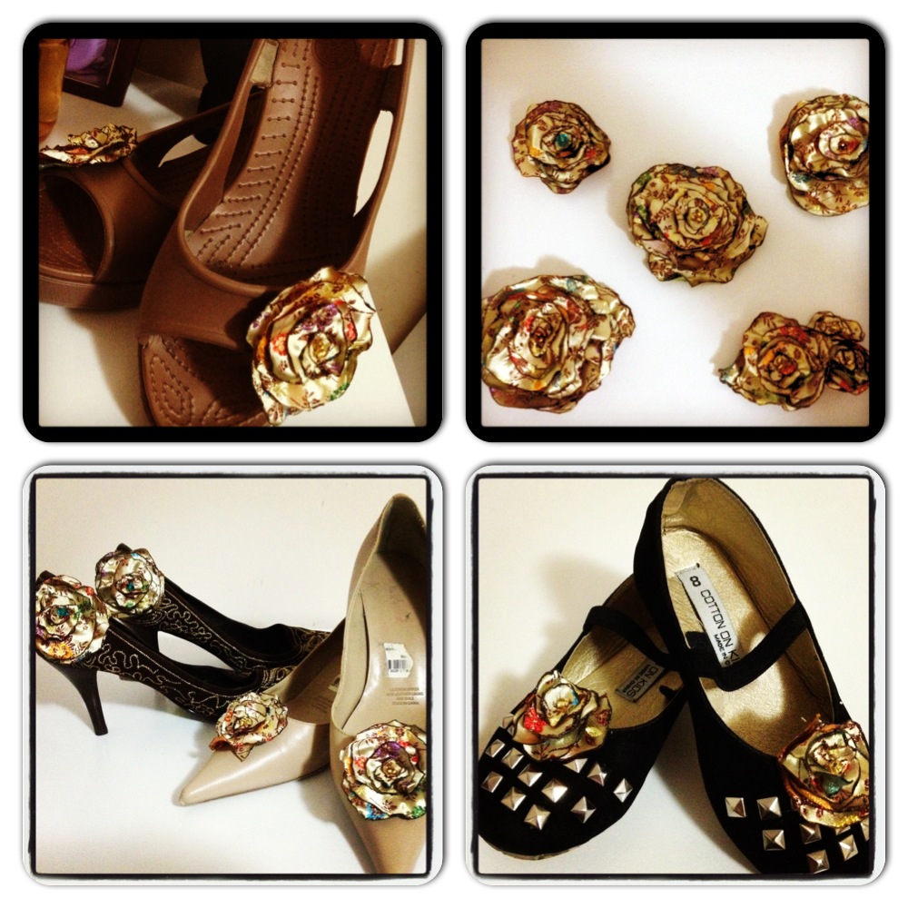 Since then I decided to make shoe clips and hair clips from the left over material.